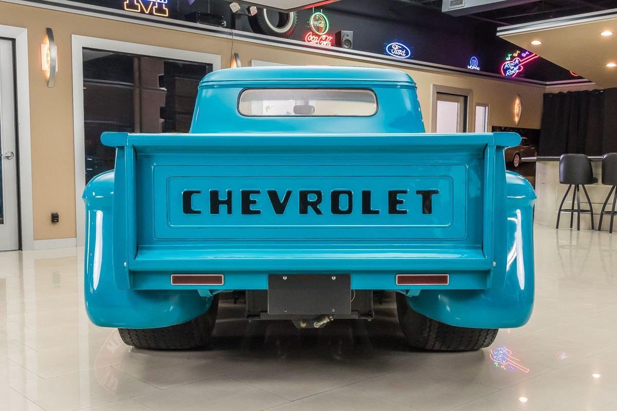 The chassis and braking systems have been upgraded to match the engine’s performance. Power steering and four-wheel disc brakes significantly enhance control and stopping capability, while updated suspension components help the truck feel planted and confident on modern roads. These upgrades allow the classic 3100 to be driven and enjoyed far beyond show use.