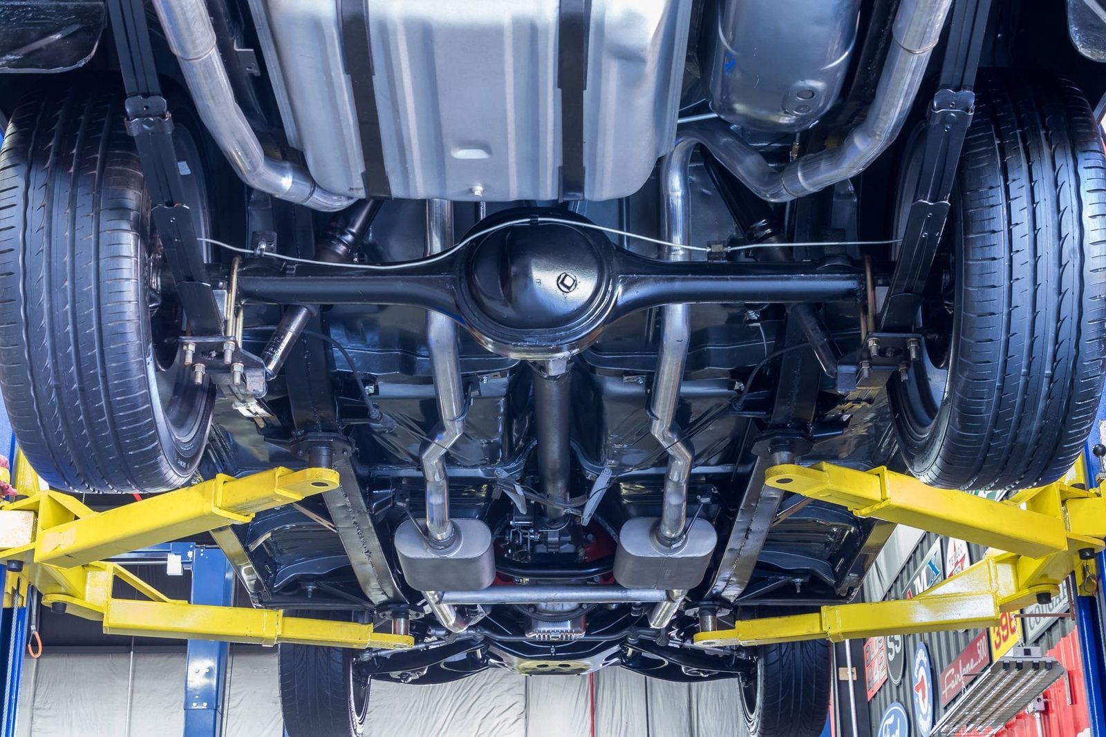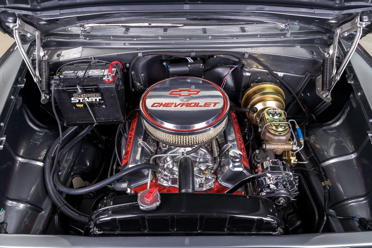 Power comes from a Chevrolet 350ci V8 paired with a 4-speed manual transmission, delivering a hands-on driving experience that perfectly suits the character of a Tri-Five Chevy. The dual exhaust system adds a classic V8 soundtrack, making every drive feel special. Power-assisted brakes with front discs provide confident stopping power, enhancing both safety and drivability.