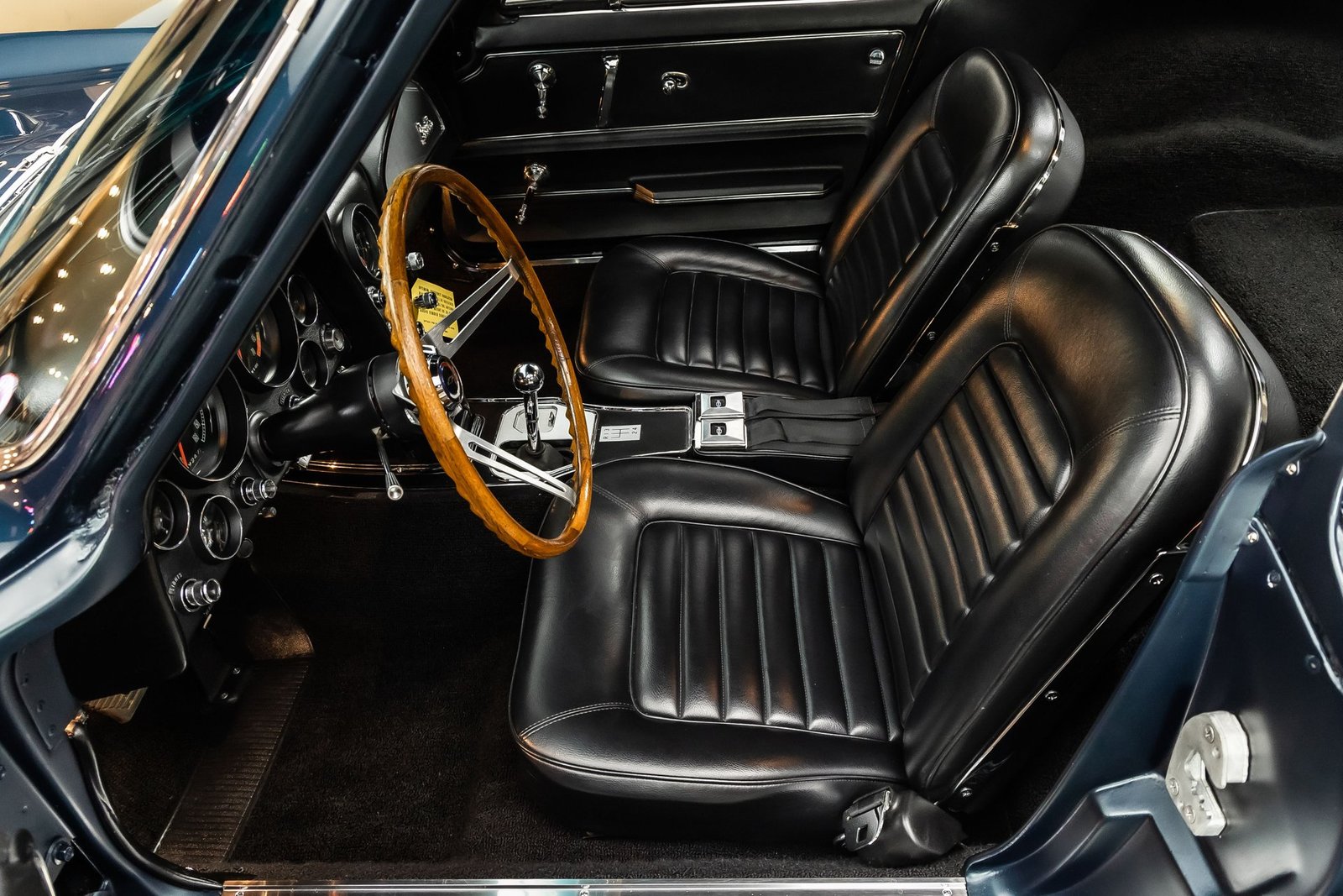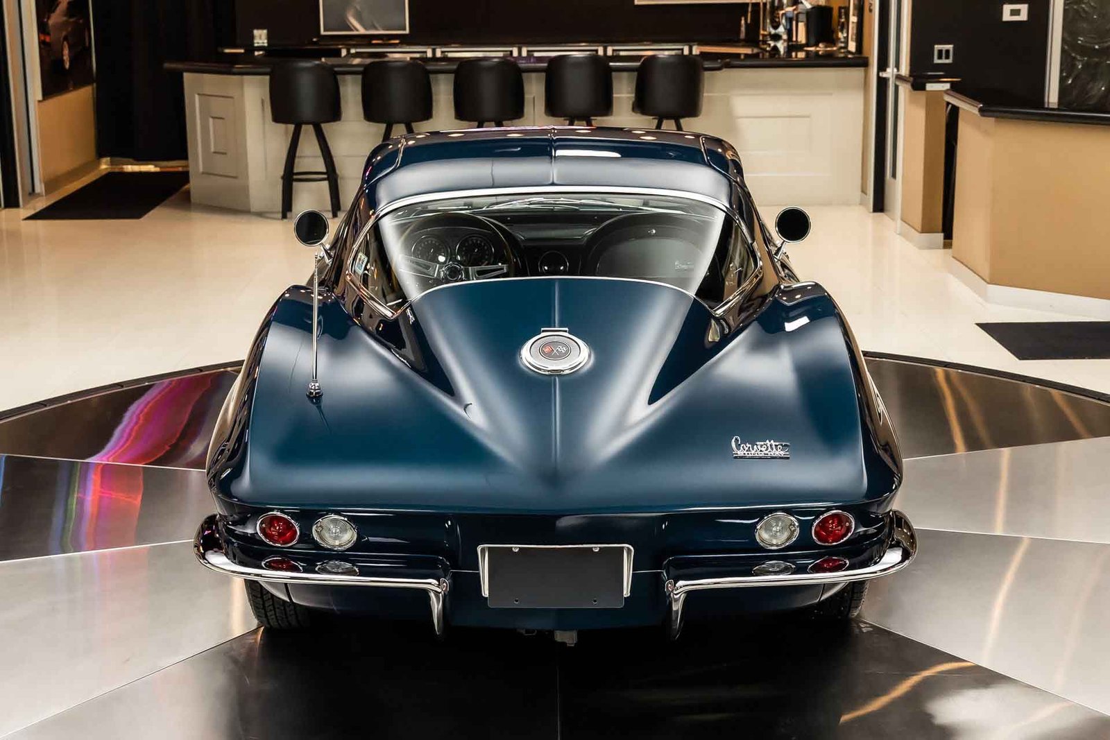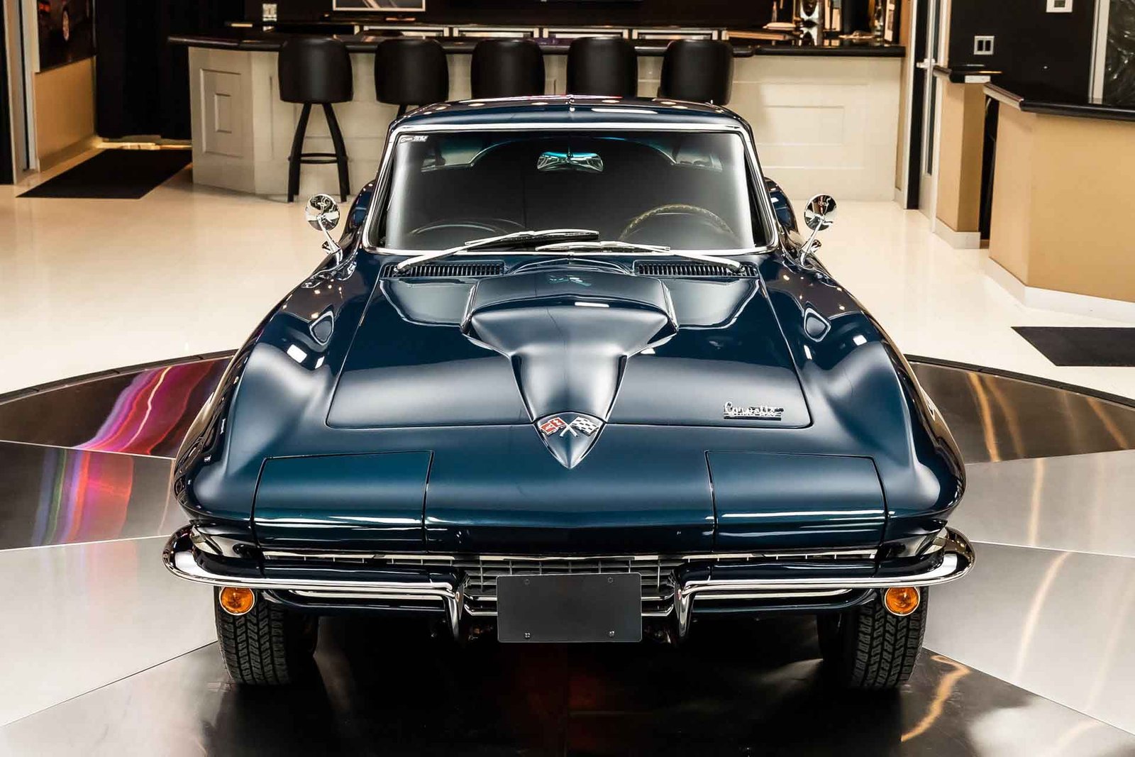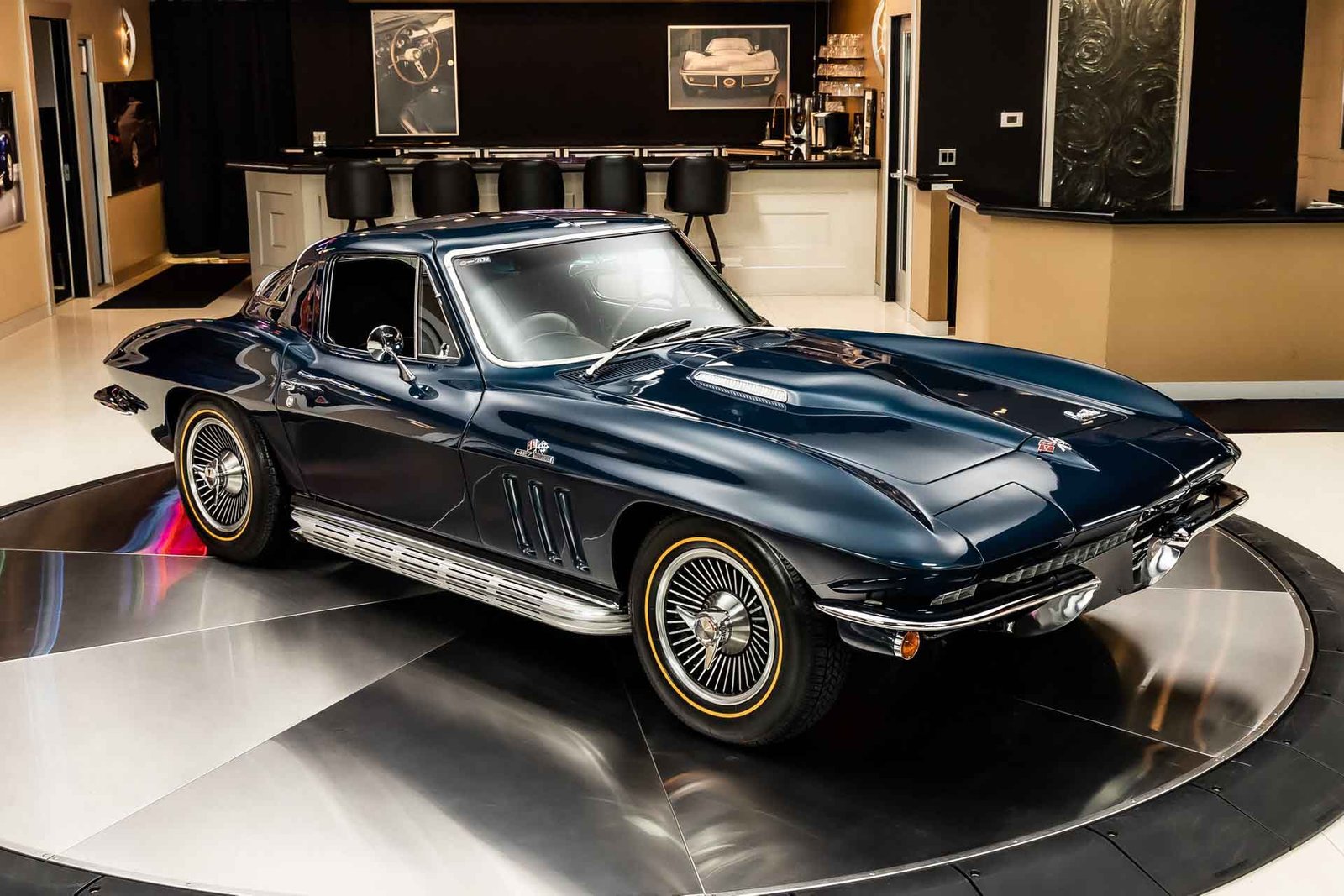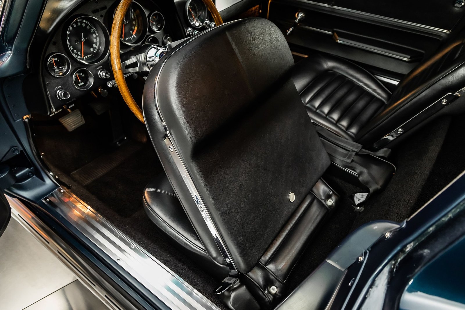 Inside, the black interior remains faithful to original specifications, featuring bucket seats, factory instrumentation, and classic Corvette cockpit design. From the restored undercarriage to the documented drivetrain and award recognition, this Stingray Coupe represents a rare opportunity to own a meticulously restored, historically significant Corvette built to exacting standards.