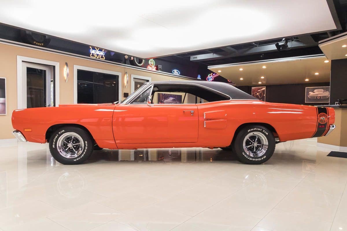 This example has undergone a complete rotisserie restoration and retains its original sheet metal, a major plus for collectors. Finished in its original orange color, the car presents with strong visual impact and classic Super Bee personality. With only a few hundred miles driven since completion, it maintains a fresh, tightly sorted feel that reflects the quality of the restoration.
