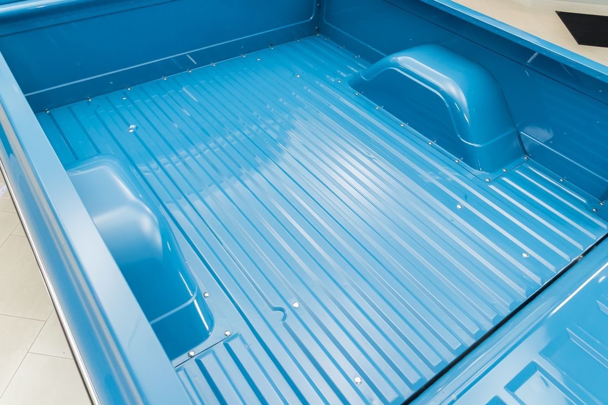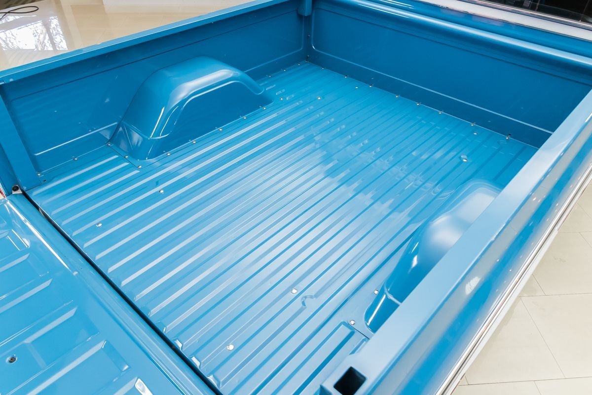 This example has undergone a complete frame-off, rotisserie restoration, executed with a strong focus on quality and factory-correct presentation. Finished in its original-style blue and white two-tone paint scheme, the exterior reflects the timeless appeal of an early-1970s Chevrolet pickup. The body presents cleanly, with straight lines and crisp trim that highlight the truck’s classic proportions.