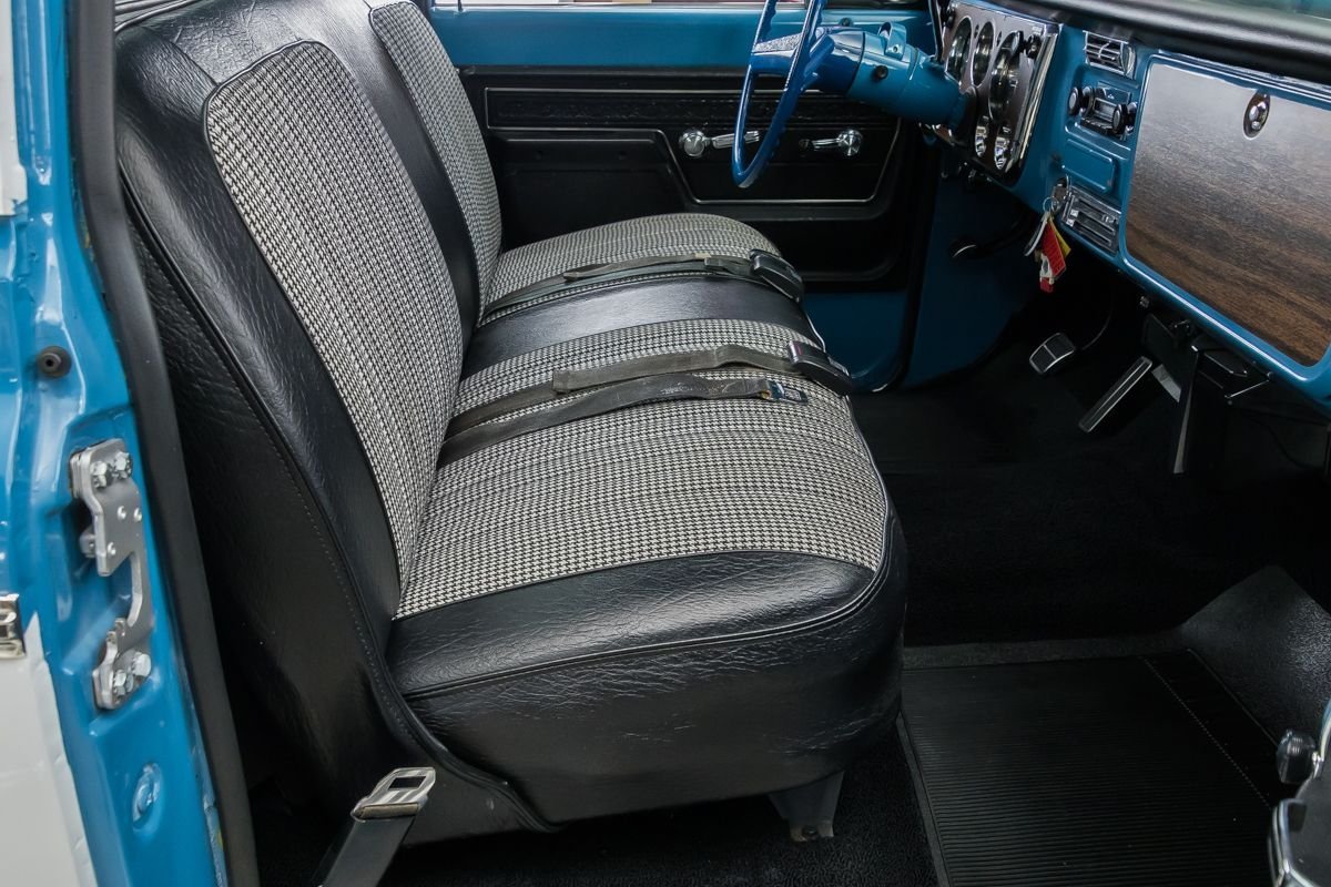 Inside, the cabin maintains a period-correct feel with a houndstooth bench seat, column shifter, and a neatly painted dash. The result is a pickup that captures the look and feel of a factory-fresh 1972 C10 while benefiting from a thorough, high-quality restoration that’s ready to be driven and enjoyed.